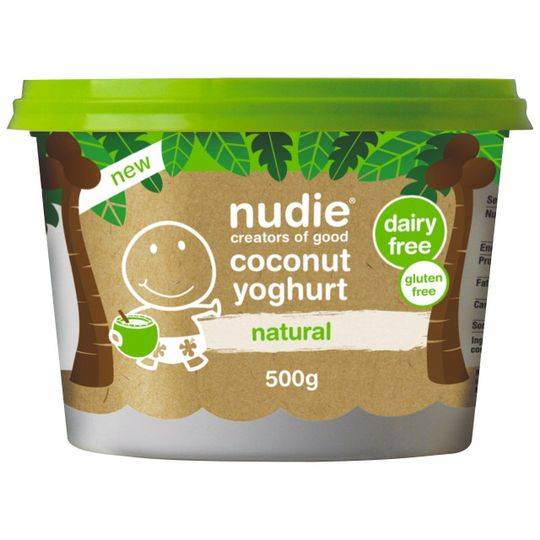 Кокосовият йогурт на марката Nudie (което бих превела като голичък) съдържа само кокосово мляко и млечни култури. Тоест това автоматично не е просто йогурт, а си е кисело мляко, тъй като има пробиотици. Вкусът е много приятен, а кокосът не е никак натрапчив. По-скоро е като лек крем или мус с кокосов аромат. Много хубаво. Консумирах го с плодове, но опитах да го добавя и към солено ястие и определено беше приятно. Първият път си купих съвсем малка опаковка, а вторият по-голяма (500гр). Но след последното ядене, усетих, че стомахът ми къркори доста и реших, че може би не му харесва много и не съм си купувала за трети път. Научих се да слушам тялото си и да разбирам от какви храни ми става тежко или некомфортно и кога се подува и т.н. Може би трябва да опитам друга марка? Търся си продукти с пробиотици. Такива включват всички ферментирали храни, така че може би следващото ми предизвикателство трябва да е нещо такова.